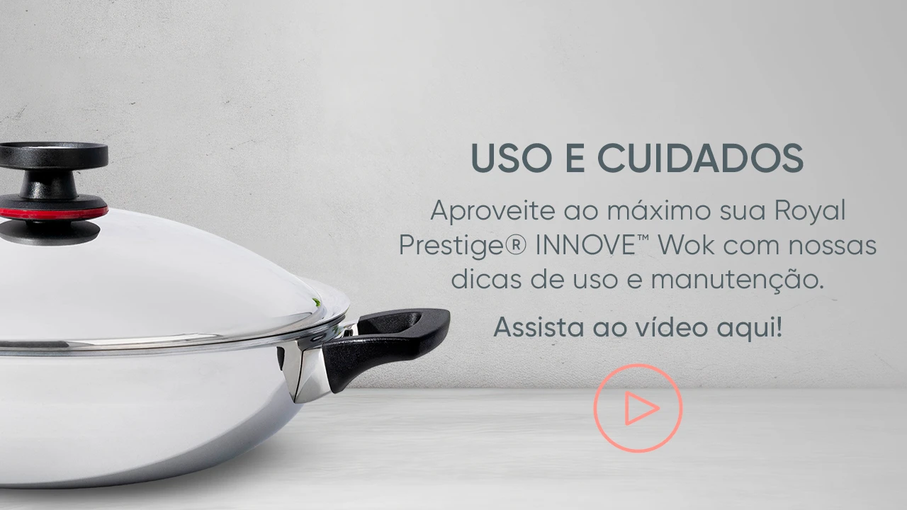 Descubra o prazer de cozinhar com estilo, tecnologia e versatilidade com a Royal Prestige® INNOVE™ Wok. Perfeito para saltear, fritar proteínas ou preparar legumes al dente. A Wok é produzida em aço inoxidável de grau cirúrgico e se destaca pelo design amplo, curvo e elegante. Compatível com fogões a gás, elétricos e de indução, garante uma distribuição de calor uniforme para receitas rápidas, saborosas e cheias de textura.
