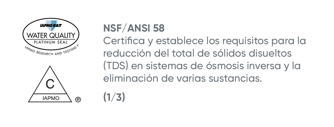 La ósmosis inversa es un proceso que filtra el agua presurizándola y empujándola a través de una barrera con poros extremadamente diminutos. Este proceso disminuye las sustancias para obtener agua con frescura mejorada y en el momento que lo desees.