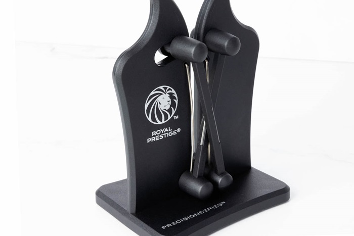 Elaborado con tecnología patentada para afilar fácilmente cuchillos de hojas lisas y serradas. Se ajusta automáticamente para adaptarse a los diferentes ángulos de la hoja. Indispensable en tu cocina para pulir, afilar y alinear tus cuchillos. Parte de la línea exclusiva Precision Series III™ de Royal Prestige®.