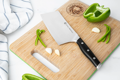 El Royal Prestige® Cleaver es el cuchillo más grande para cortar y picar alimentos. Su hoja es más ancha y pesada y te facilitará cualquier corte. Su renovado mango disminuye la fatiga y tiene el balance perfecto para que puedas controlarlo como los profesionales. Además, cuenta con un filo de fábrica sin igual.