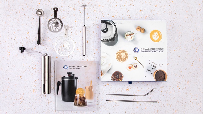 Te invitamos a descubrir las ilimitadas posibilidades del arte del café con tu nuevo Royal Prestige® BaristArt Kit. Cada pieza fue seleccionada especialmente para despertar al barista en ti y explorar tu creatividad.