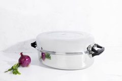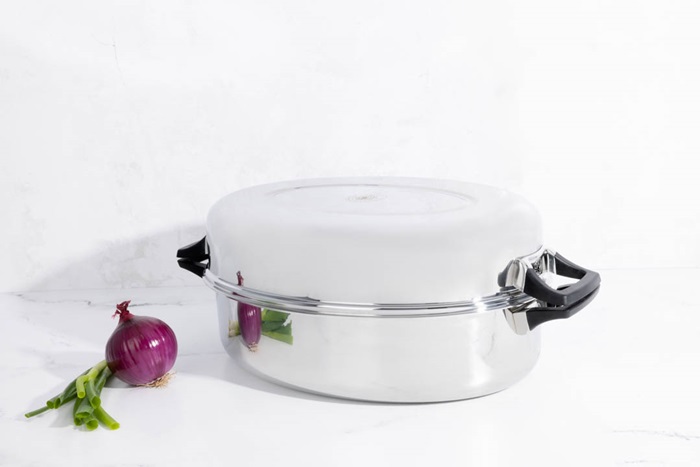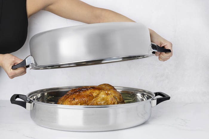 Cocina tu pavo sobre la estufa y prepara verdaderos banquetes para compartir en familia, en cualquier época del año. Fabricada con acero inoxidable grado quirúrgico y con garantía limitada de 50 años. Puedes usarla en el horno o sobre la estufa. Dimensión: 18” x 13” / 46 cm x 33 cm.