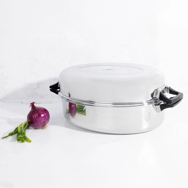 Cocina tu pavo sobre la estufa y prepara verdaderos banquetes para compartir en familia, en cualquier época del año. Fabricada con acero inoxidable grado quirúrgico y con garantía limitada de 50 años. Puedes usarla en el horno o sobre la estufa. Dimensión: 18” x 13” / 46 cm x 33 cm.